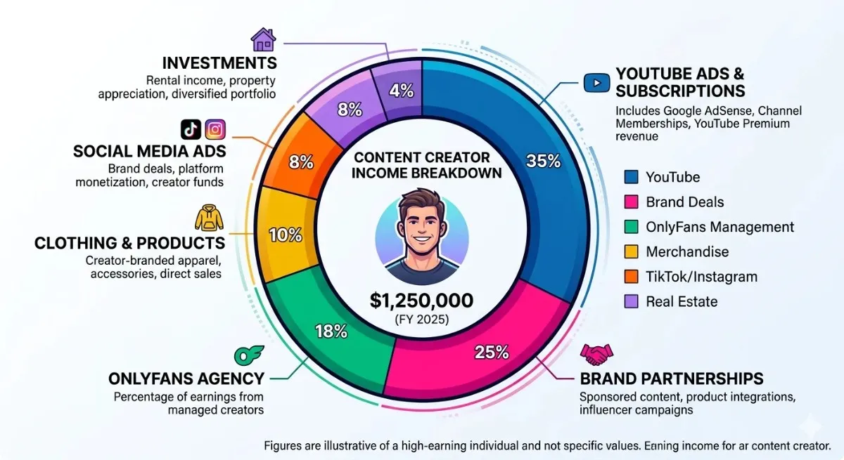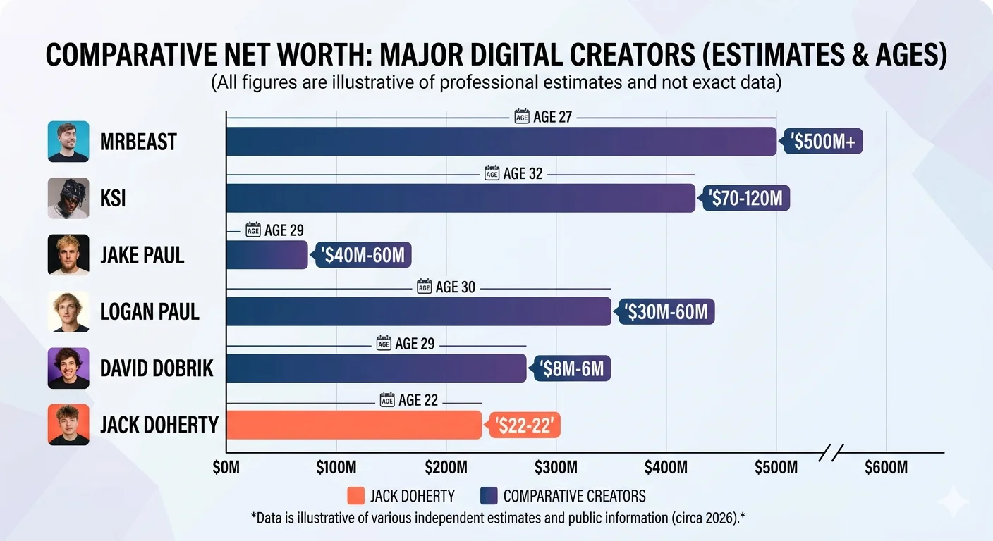 Jack Doherty’s primary income sources include YouTube ad revenue, brand sponsorships, and merchandise sales. His diversified approach has allowed him to build a stable financial foundation, capitalizing on his digital presence.